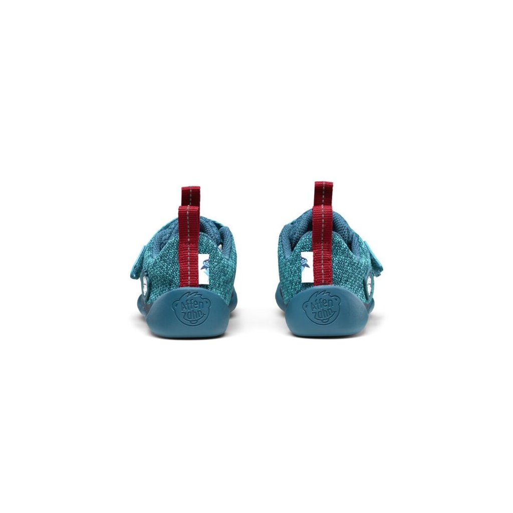 Tenisky Affenzahn z pleteného polyesterového vlákna v modré barvě se žralokem zaujmou nejen chlapce, ale jistě i holčičky.